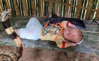 The baby is in danger when going to the field with his mother Read More