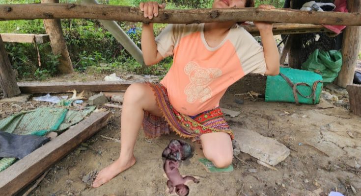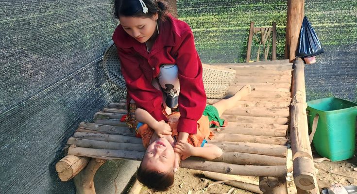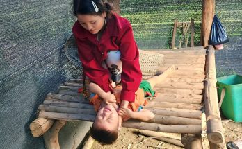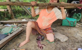 Mothe’r Harvest Green Cabbage Sell and Grill Meat for Child to Eat on Cold Rainy Days